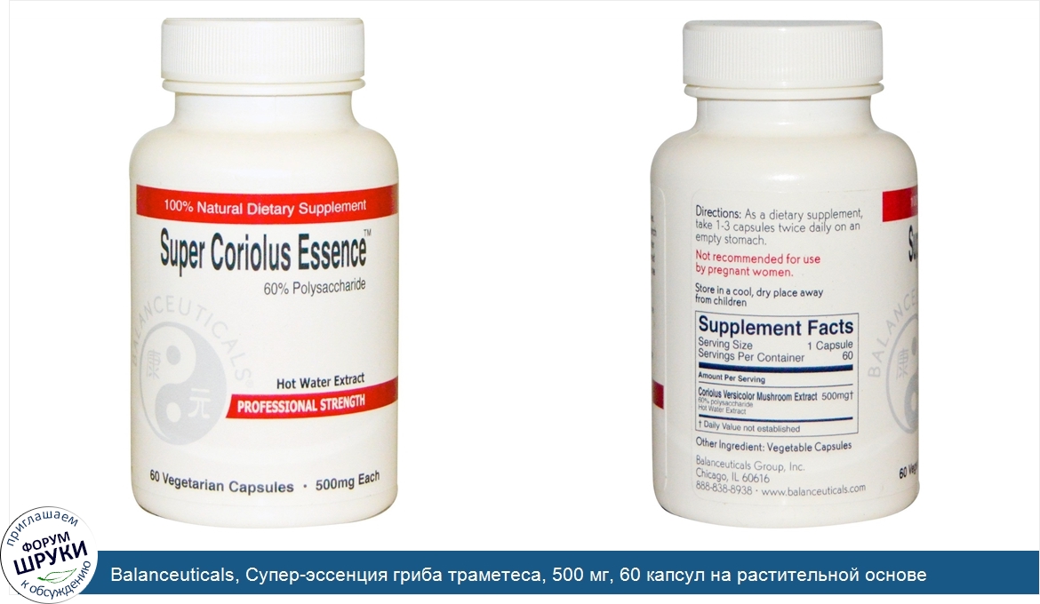 Balanceuticals, Супер-эссенция гриба траметеса, 500 мг, 60 капсул на растительной основе