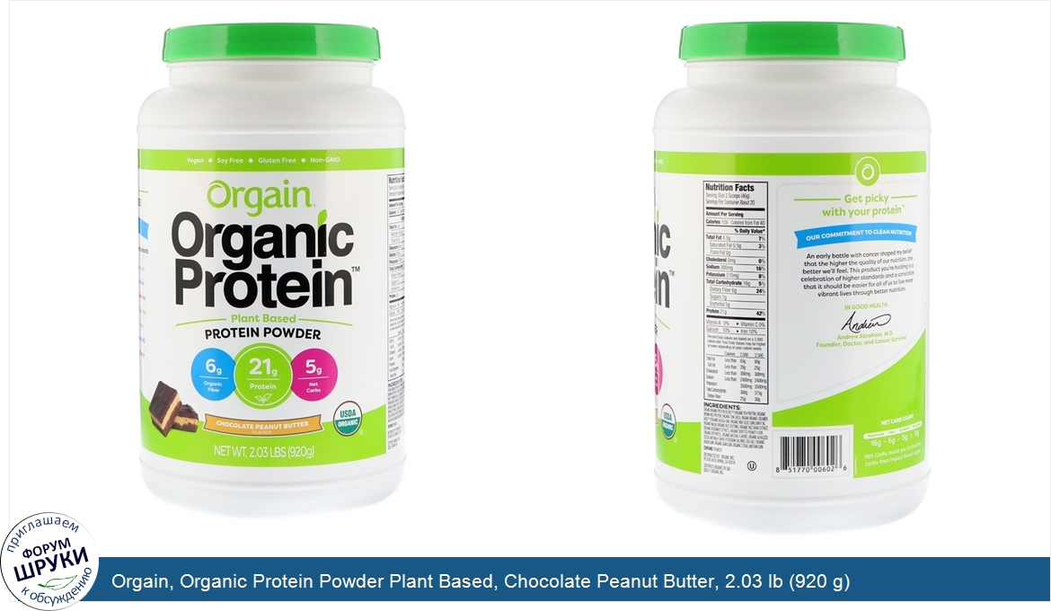 Друзья, если у вас есть отзыв/дополнение/комментарий/вопрос относительно Orgain, Organic Protein Powder Plant Based, Chocolate Peanut Butter, 2.03 lb (920 g) - напишите его ответом в эту тему (это будет полезно всему сообществу в целом и вам в отдельности).