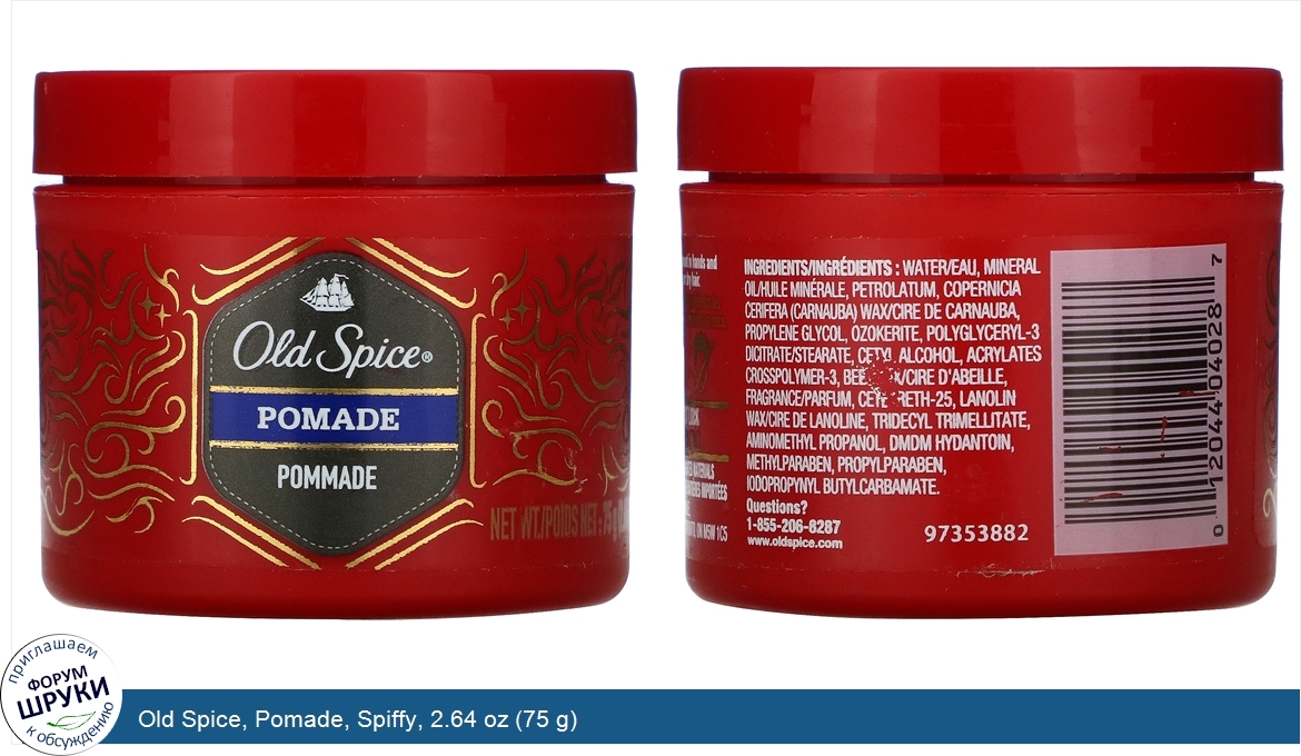 Друзья, если у вас есть отзыв/дополнение/комментарий/вопрос относительно Old Spice, Pomade, Spiffy, 2.64 oz (75 g) - напишите его ответом в эту тему (это будет полезно всему сообществу в целом и вам в отдельности).