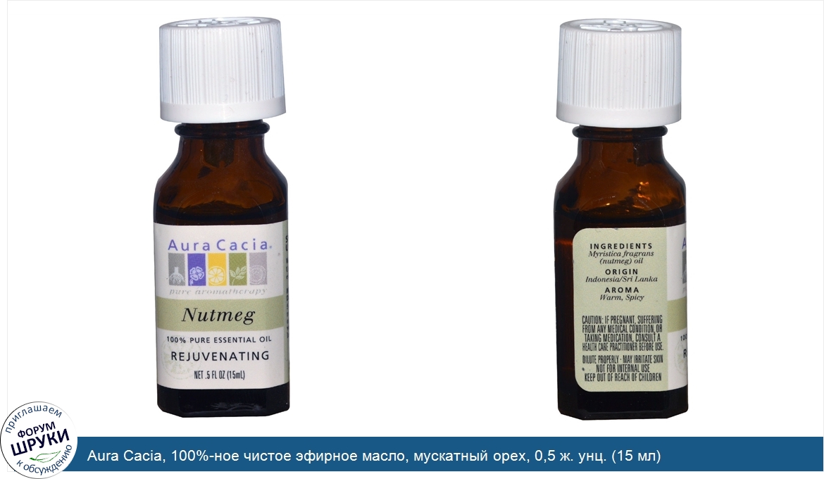 Aura Cacia, 100%-ное чистое эфирное масло, мускатный орех, 0,5 ж. унц. (15 мл)