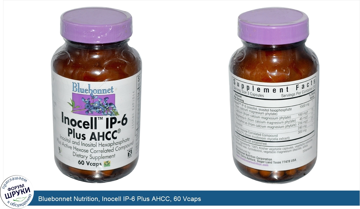 ru Bluebonnet Nutrition, Inocell IP-6 Plus AHCC, 60 Vcaps