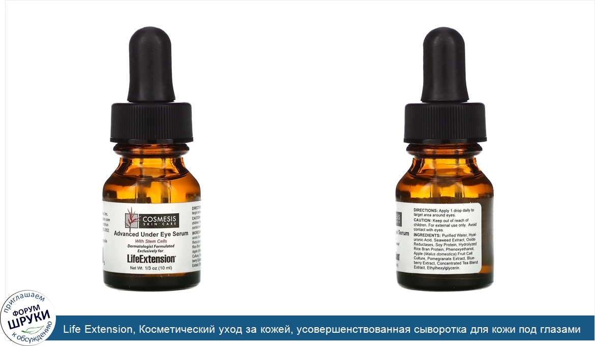 Друзья, если у вас есть отзыв/дополнение/комментарий/вопрос относительно Life Extension, Косметический уход за кожей, усовершенствованная сыворотка для кожи под глазами, 10 мл (1/3 унции) - напишите его ответом в эту тему (это будет полезно всему сообществу в целом и вам в отдельности).