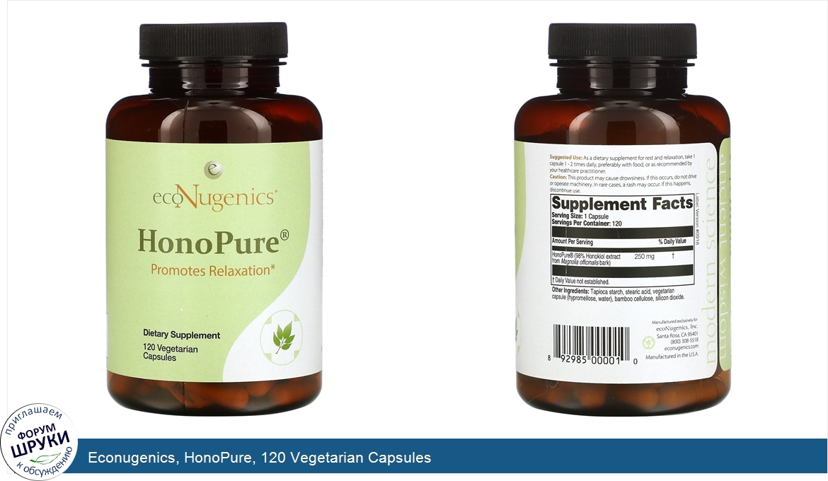 Друзья, если у вас есть отзыв/дополнение/комментарий/вопрос относительно Econugenics, HonoPure, 120 Vegetarian Capsules - напишите его ответом в эту тему (это будет полезно всему сообществу в целом и вам в отдельности).