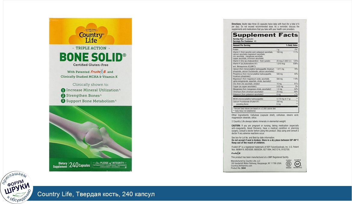Друзья, если у вас есть отзыв/дополнение/комментарий/вопрос относительно Country Life, Твердая кость, 240 капсул - напишите его ответом в эту тему (это будет полезно всему сообществу в целом и вам в отдельности).