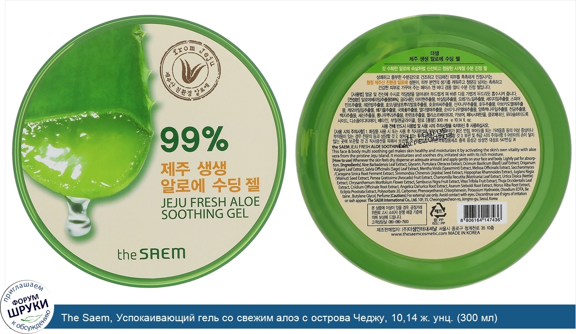 Друзья, если у вас есть отзыв/дополнение/комментарий/вопрос относительно The Saem, Успокаивающий гель со свежим алоэ с острова Чеджу, 10,14 ж. унц. (300 мл) - напишите его ответом в эту тему (это будет полезно всему сообществу в целом и вам в отдельности).