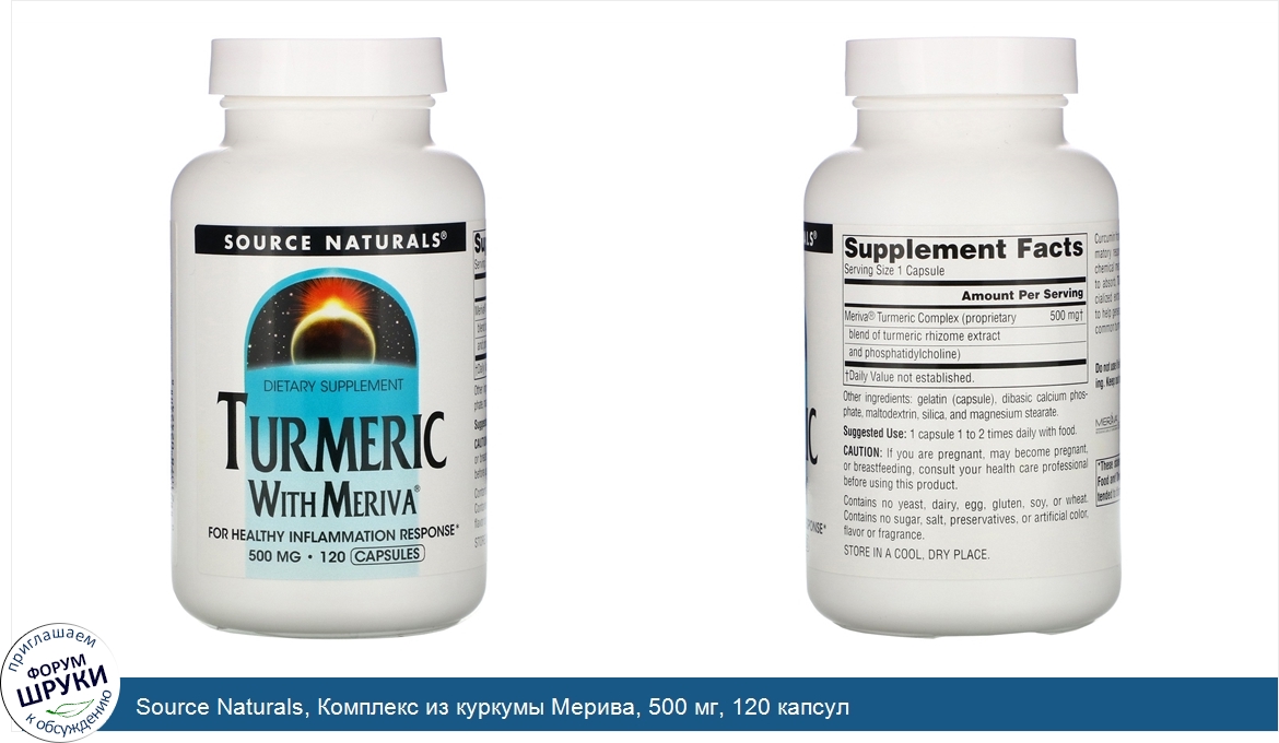 Друзья, если у вас есть отзыв/дополнение/комментарий/вопрос относительно Source Naturals, Комплекс из куркумы Мерива, 500 мг, 120 капсул - напишите его ответом в эту тему (это будет полезно всему сообществу в целом и вам в отдельности).