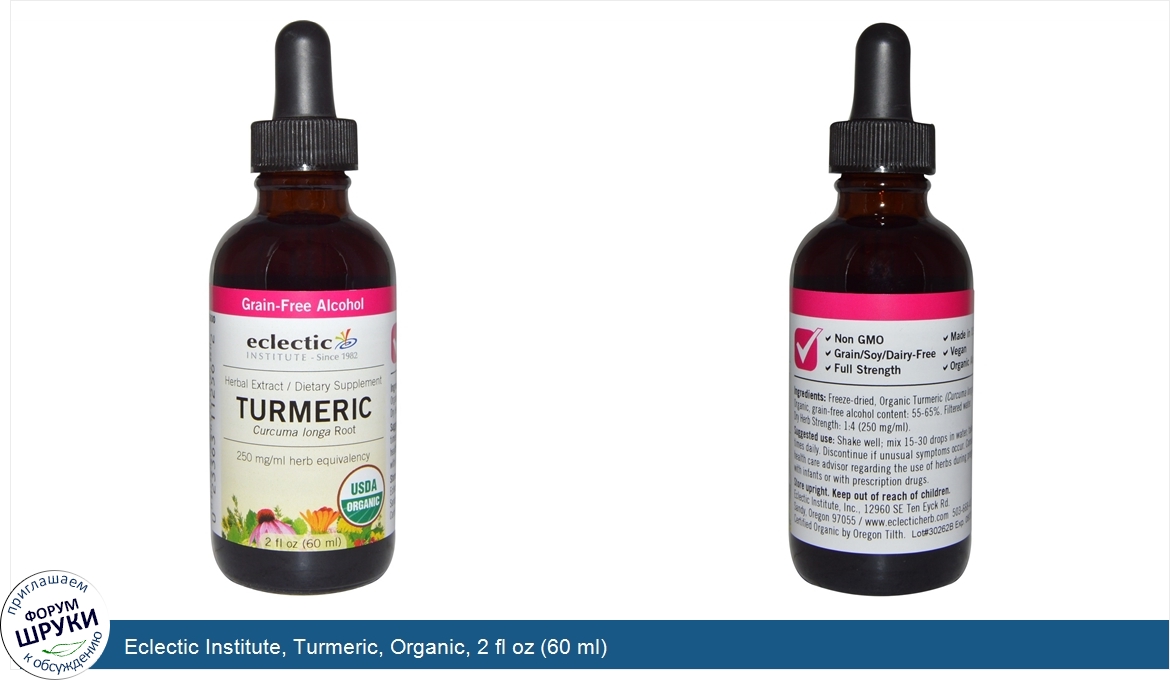 Друзья, если у вас есть отзыв/дополнение/комментарий/вопрос относительно Eclectic Institute, Turmeric, Organic, 2 fl oz (60 ml) - напишите его ответом в эту тему (это будет полезно всему сообществу в целом и вам в отдельности).