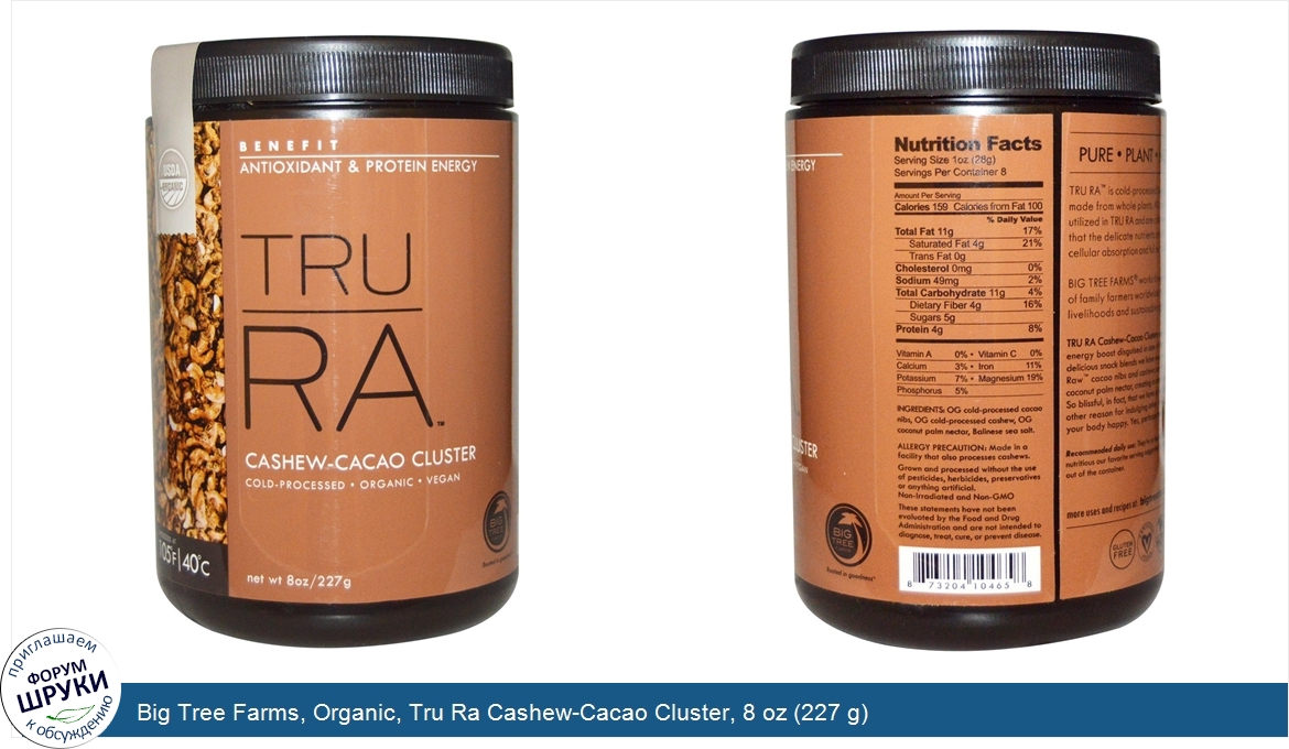 ru Big Tree Farms, Organic, Tru Ra Cashew-Cacao Cluster, 8 oz (227 g)