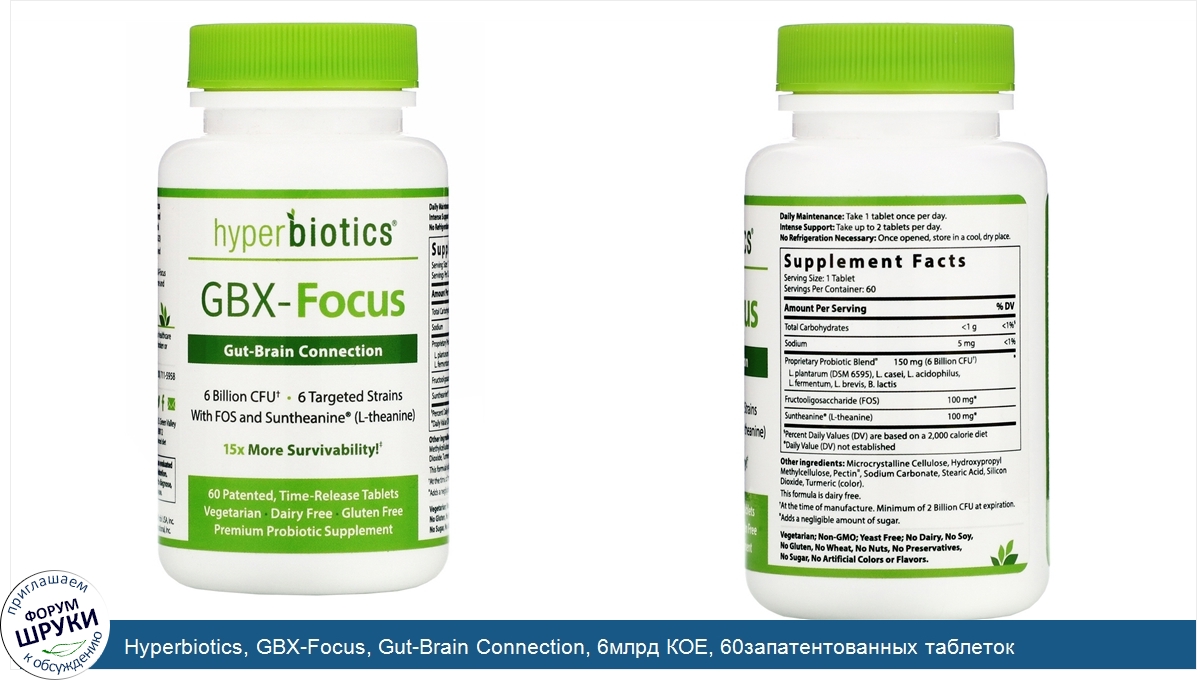 Hyperbiotics, GBX-Focus, Gut-Brain Connection, 6млрд КОЕ, 60запатентованных таблеток постепенного высвобождения