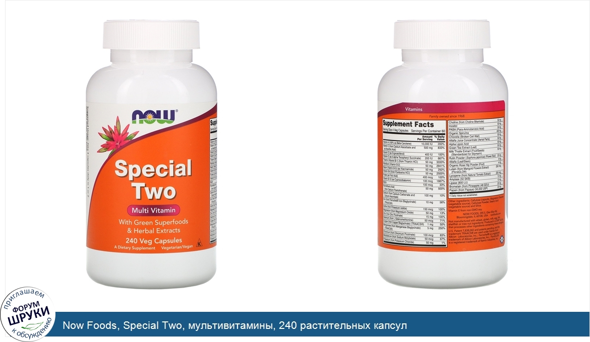 Друзья, если у вас есть отзыв/дополнение/комментарий/вопрос относительно Now Foods, Special Two, мультивитамины, 240 растительных капсул - напишите его ответом в эту тему (это будет полезно всему сообществу в целом и вам в отдельности).