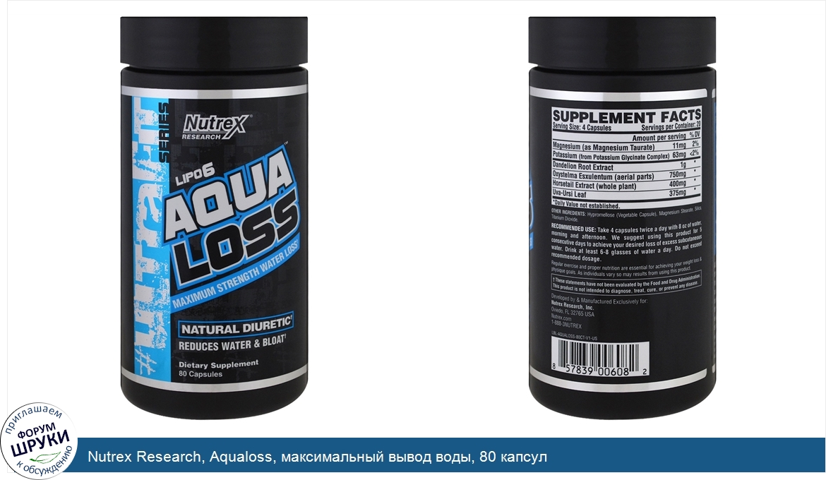Nutrex Research, Aqualoss, максимальный вывод воды, 80 капсул