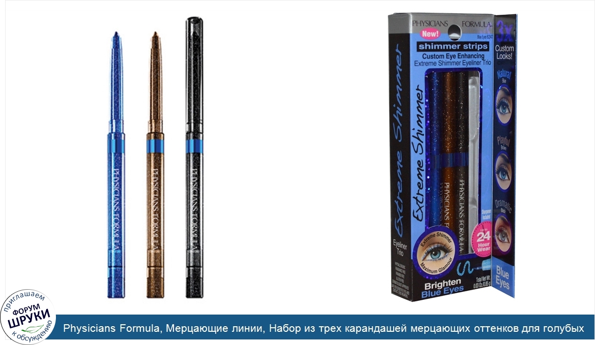 Друзья, если у вас есть отзыв/дополнение/комментарий/вопрос относительно Physicians Formula, Мерцающие линии, Набор из трех карандашей мерцающих оттенков для голубых глаз, 0,03 унции (0,85 г) - напишите его ответом в эту тему (это будет полезно всему сообществу в целом и вам в отдельности).