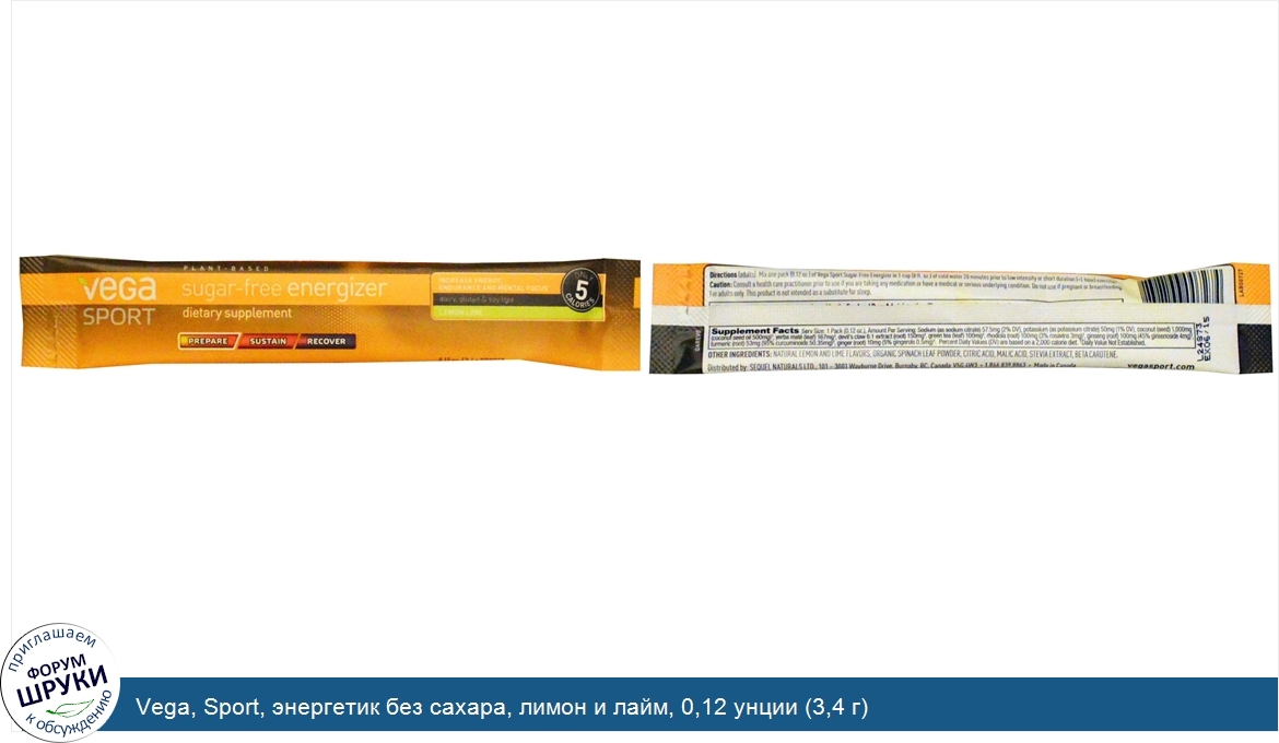 Vega, Sport, энергетик без сахара, лимон и лайм, 0,12 унции (3,4 г)