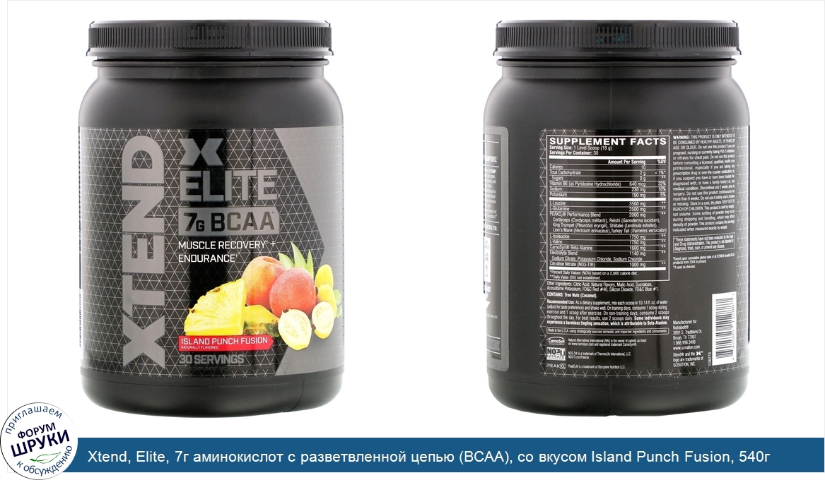 Xtend, Elite, 7г аминокислот с разветвленной цепью (BCAA), со вкусом Island Punch Fusion, 540г (1,19фунта)