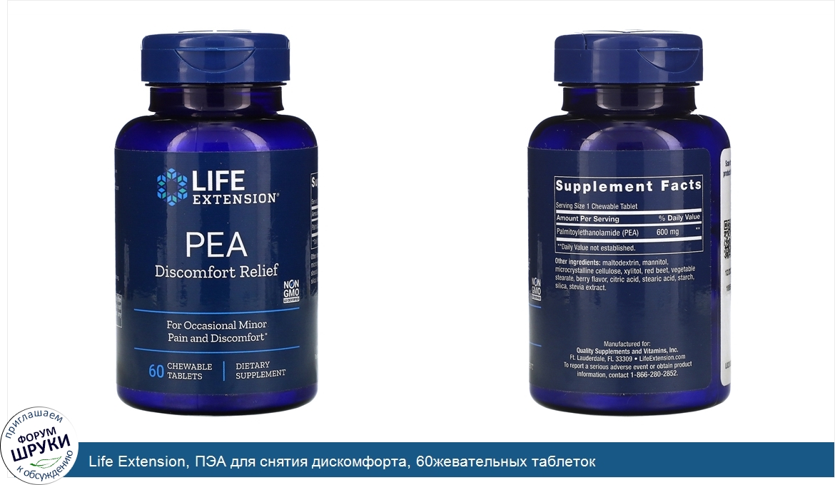 Друзья, если у вас есть отзыв/дополнение/комментарий/вопрос относительно Life Extension, ПЭА для снятия дискомфорта, 60жевательных таблеток - напишите его ответом в эту тему (это будет полезно всему сообществу в целом и вам в отдельности).