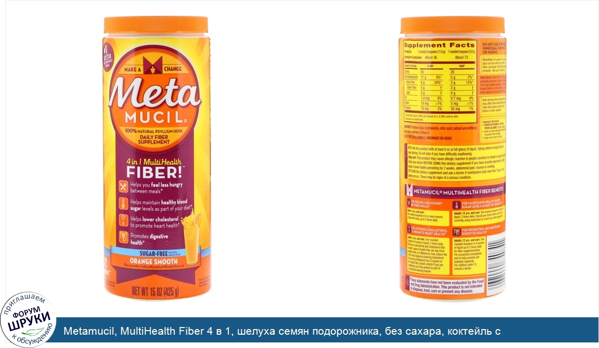 Друзья, если у вас есть отзыв/дополнение/комментарий/вопрос относительно Metamucil, MultiHealth Fiber 4 в 1, шелуха семян подорожника, без сахара, коктейль с апельсиновым вкусом, 160 капсул - напишите его ответом в эту тему (это будет полезно всему сообществу в целом и вам в отдельности).