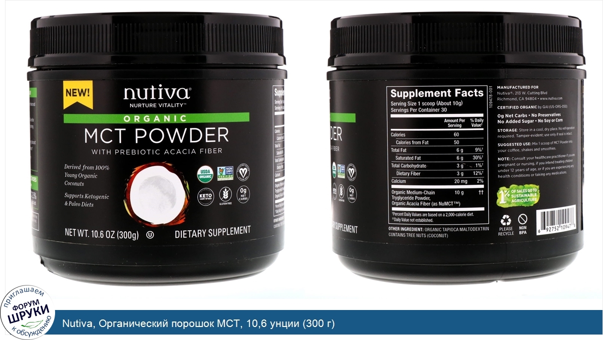 ru Nutiva, Органический порошок MCT, 10,6 унции (300 г)