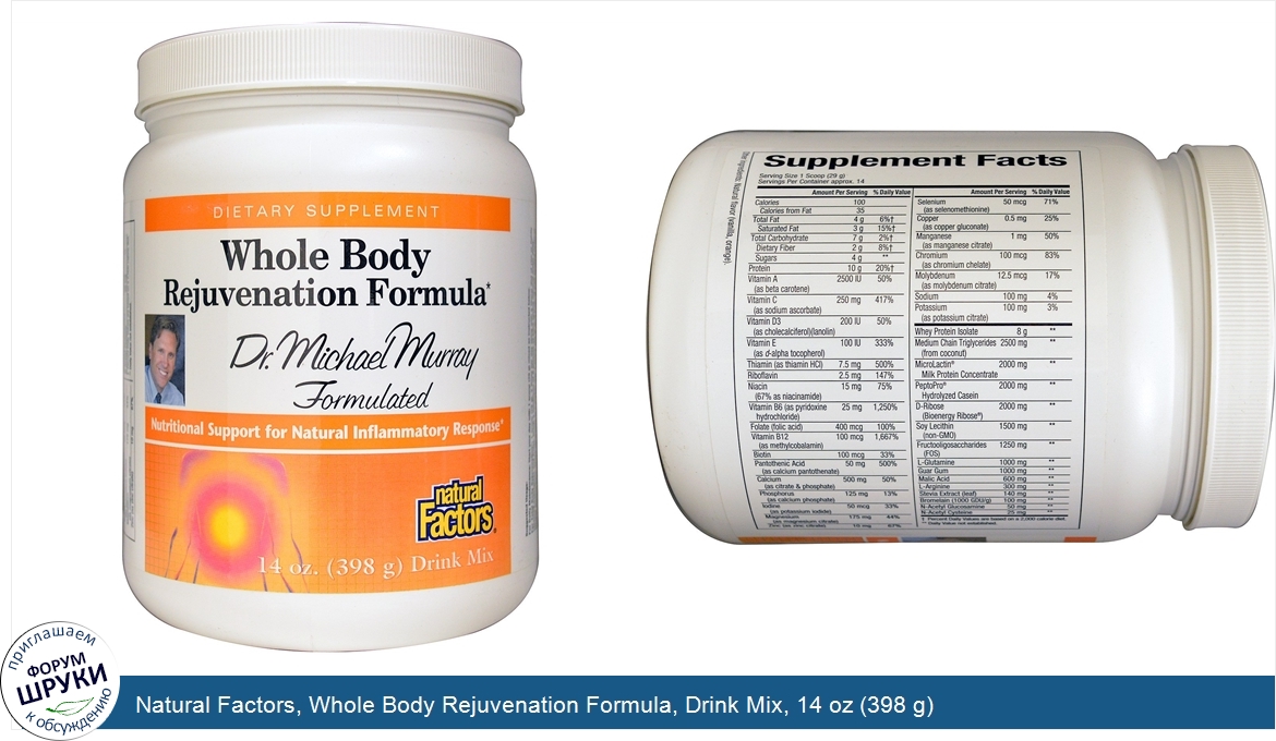 Друзья, если у вас есть отзыв/дополнение/комментарий/вопрос относительно Natural Factors, Whole Body Rejuvenation Formula, Drink Mix, 14 oz (398 g) - напишите его ответом в эту тему (это будет полезно всему сообществу в целом и вам в отдельности).