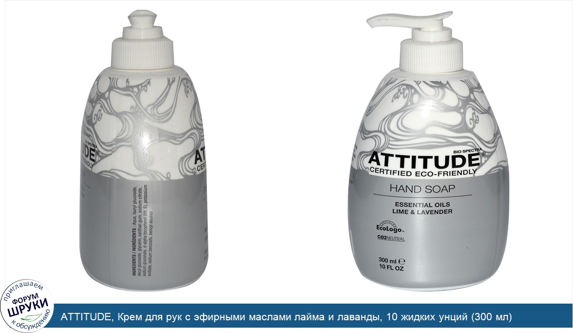 Друзья, если у вас есть отзыв/дополнение/комментарий/вопрос относительно ATTITUDE, Крем для рук с эфирными маслами лайма и лаванды, 10 жидких унций (300 мл) - напишите его ответом в эту тему (это будет полезно всему сообществу в целом и вам в отдельности).
