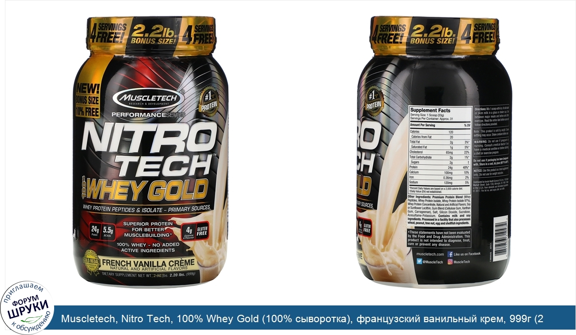 Друзья, если у вас есть отзыв/дополнение/комментарий/вопрос относительно Muscletech, Nitro Tech, 100% Whey Gold (100% сыворотка), французский ванильный крем, 999г (2,20фунта) - напишите его ответом в эту тему (это будет полезно всему сообществу в целом и вам в отдельности).