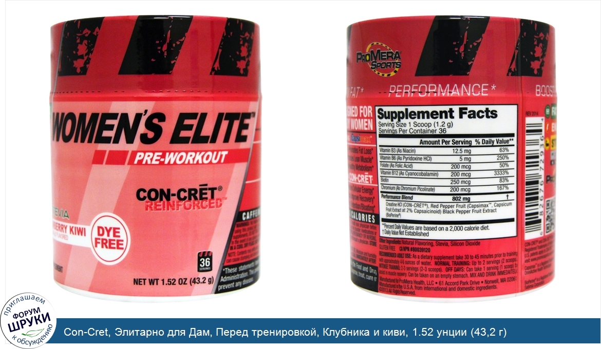 Con-Cret, Элитарно для Дам, Перед тренировкой, Клубника и киви, 1.52 унции (43,2 г)