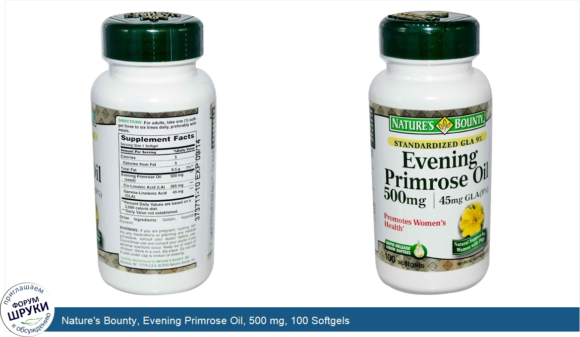 Друзья, если у вас есть отзыв/дополнение/комментарий/вопрос относительно Nature's Bounty, Evening Primrose Oil, 500 mg, 100 Softgels - напишите его ответом в эту тему (это будет полезно всему сообществу в целом и вам в отдельности).
