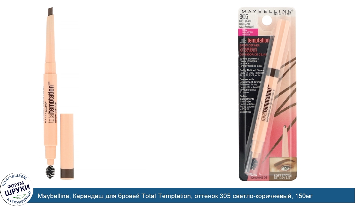 Maybelline, Карандаш для бровей Total Temptation, оттенок 305 светло-коричневый, 150мг
