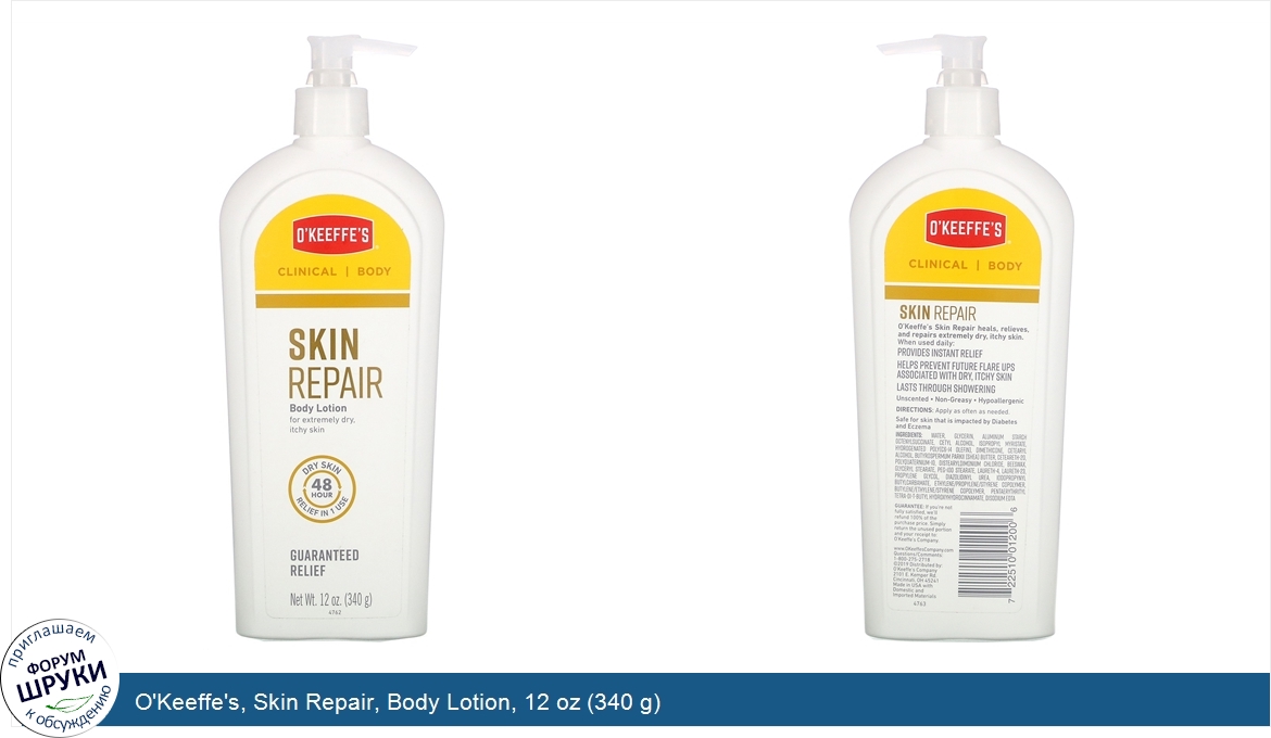 [DESCRIPT]Clinical | Body. For Extremely Dry, Itchy Skin. 48 Hour - Dry Skin - Relief in 1 Use. Guaranteed Relief. Provides Instant Relief. Helps Prevent Future Flare Ups Associated with Dry, Itchy Skin. Lasts Through Showering. Unscented, Non-Greasy, Hypoallergenic. Safe for Skin That is Impacted by Diabetes and Eczema. O'Keeffe's Skin Repair heals, relieves, and repairs extremely dry, itchy skin. When used daily.[/DESCRIPT]... (описание дополняется)