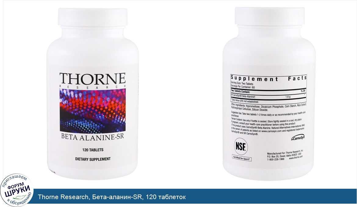 Thorne Research, Бета-аланин-SR, 120 таблеток