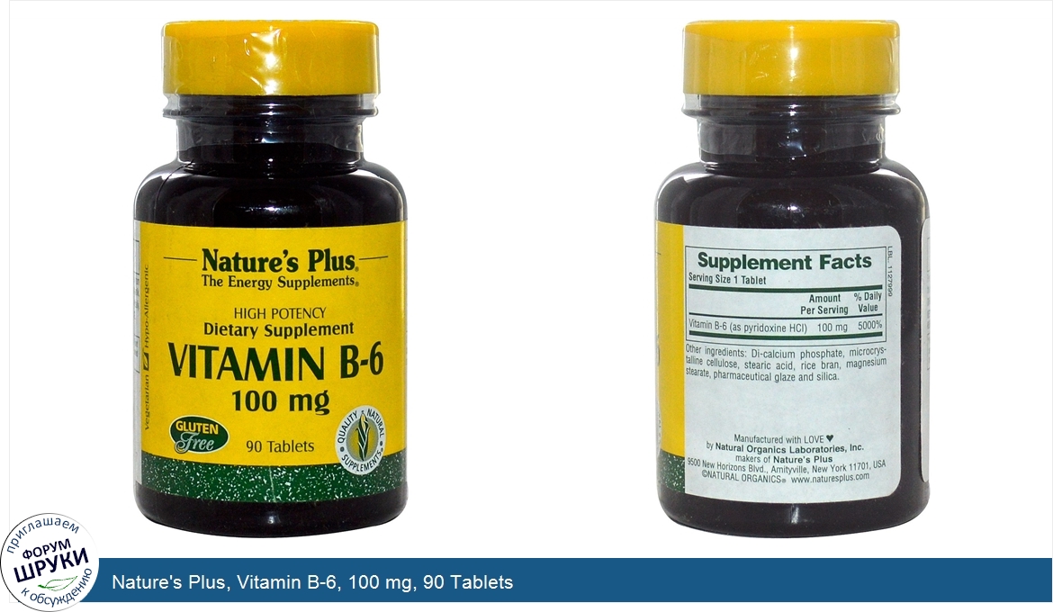 Друзья, если у вас есть отзыв/дополнение/комментарий/вопрос относительно Nature's Plus, Vitamin B-6, 100 mg, 90 Tablets - напишите его ответом в эту тему (это будет полезно всему сообществу в целом и вам в отдельности).