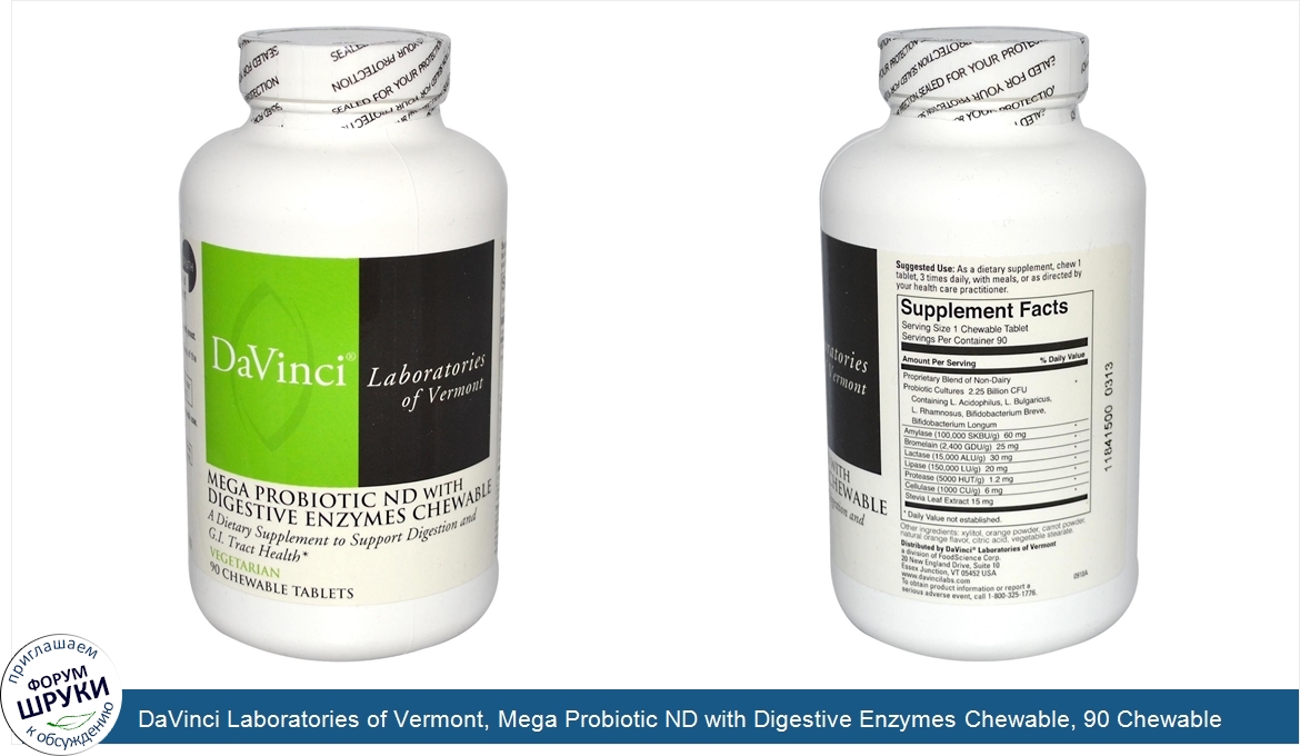 ru DaVinci Laboratories of Vermont, Mega Probiotic ND with Digestive Enzymes Chewable, 90 Chewable Tablets