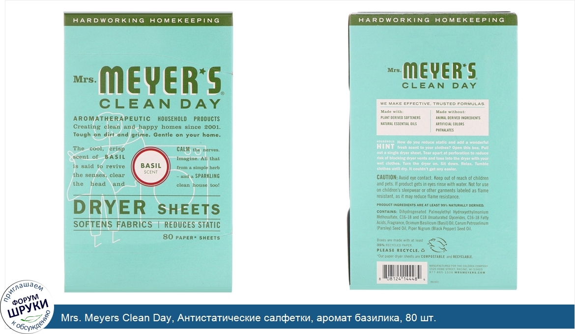Друзья, если у вас есть отзыв/дополнение/комментарий/вопрос относительно Mrs. Meyers Clean Day, Антистатические салфетки, аромат базилика, 80 шт. - напишите его ответом в эту тему (это будет полезно всему сообществу в целом и вам в отдельности).