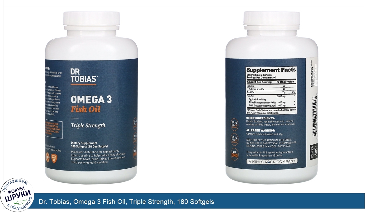 Друзья, если у вас есть отзыв/дополнение/комментарий/вопрос относительно Dr. Tobias, Omega 3 Fish Oil, Triple Strength, 180 Softgels - напишите его ответом в эту тему (это будет полезно всему сообществу в целом и вам в отдельности).