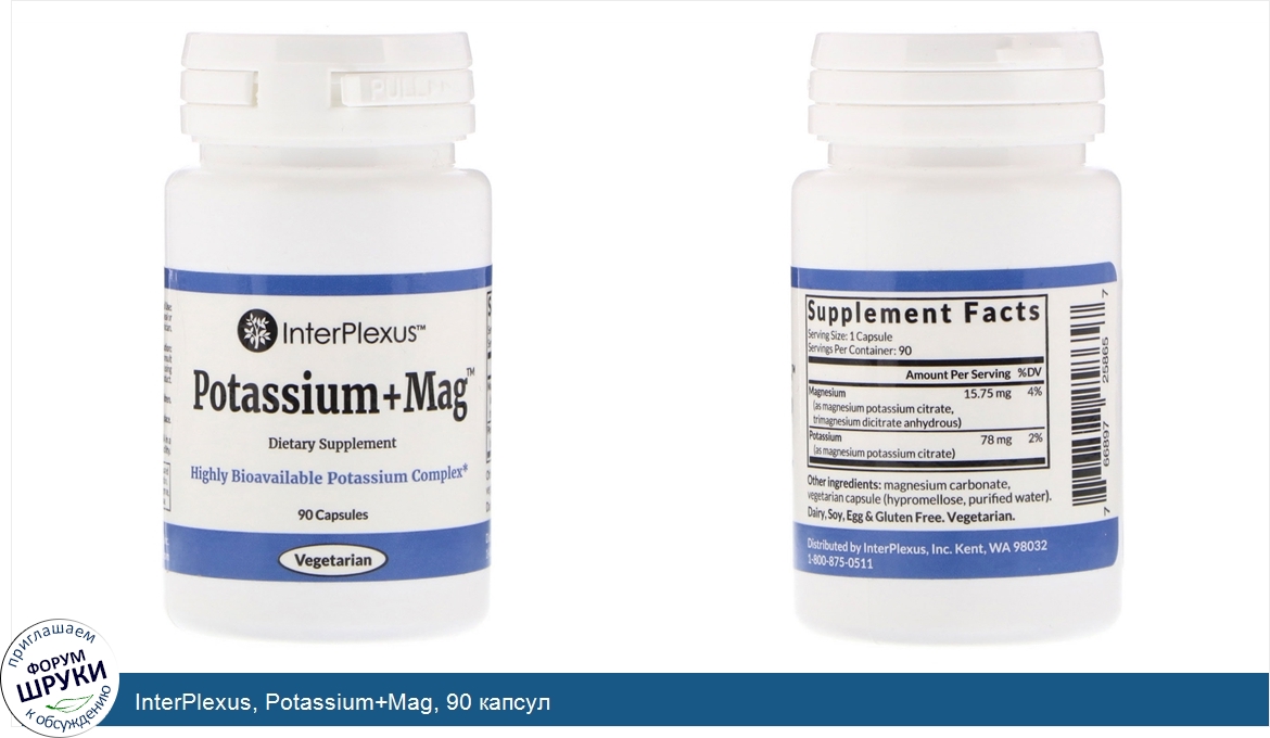 Друзья, если у вас есть отзыв/дополнение/комментарий/вопрос относительно InterPlexus, Potassium+Mag, 90 капсул - напишите его ответом в эту тему (это будет полезно всему сообществу в целом и вам в отдельности).
