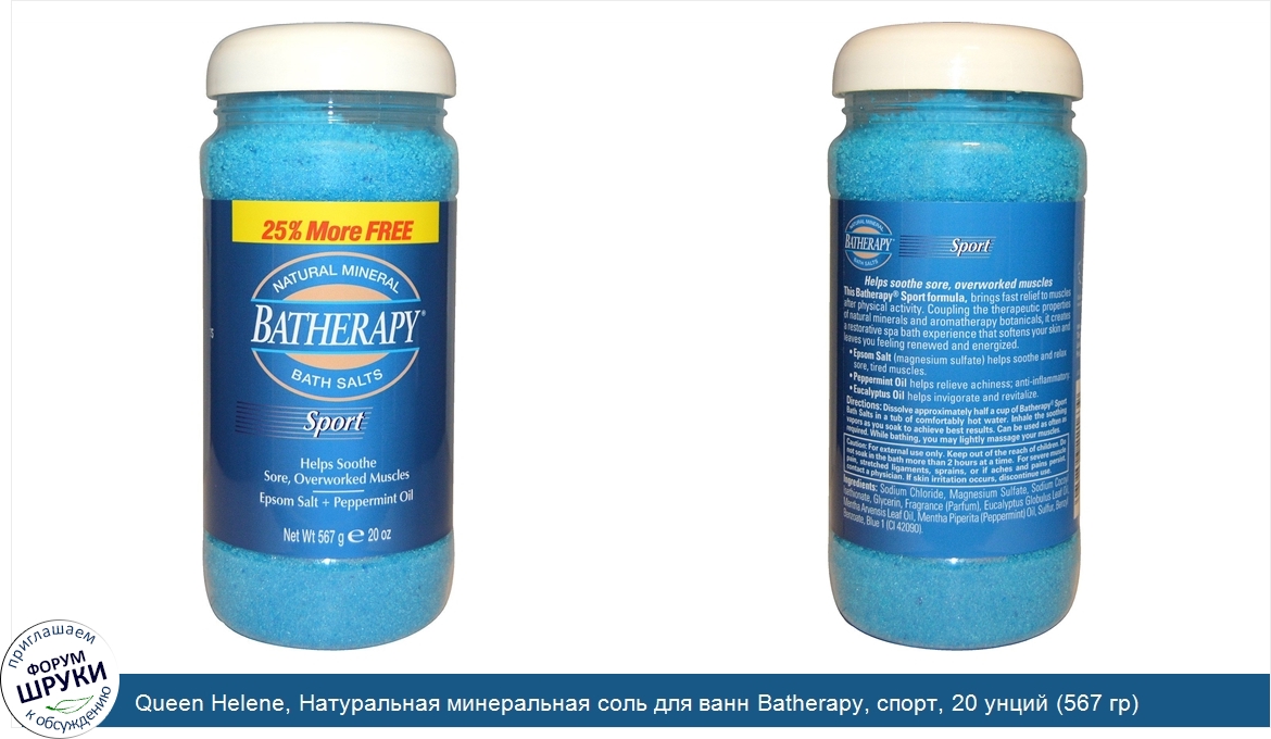 Друзья, если у вас есть отзыв/дополнение/комментарий/вопрос относительно Queen Helene, Натуральная минеральная соль для ванн Batherapy, спорт, 20 унций (567 гр) - напишите его ответом в эту тему (это будет полезно всему сообществу в целом и вам в отдельности).