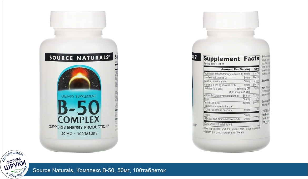 Друзья, если у вас есть отзыв/дополнение/комментарий/вопрос относительно Source Naturals, Комплекс B-50, 50мг, 100таблеток - напишите его ответом в эту тему (это будет полезно всему сообществу в целом и вам в отдельности).