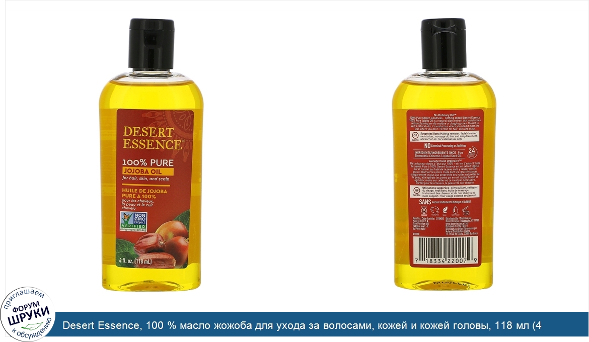 Для волос, кожи и кожи головы. 100 % веганский продукт. Не содержит ГМО. Не содержит глютена. Сертифицировано программой Leaping Bunny. Не содержит обычного масла. Масло жожоба Desert Essence – это чистый натурал...