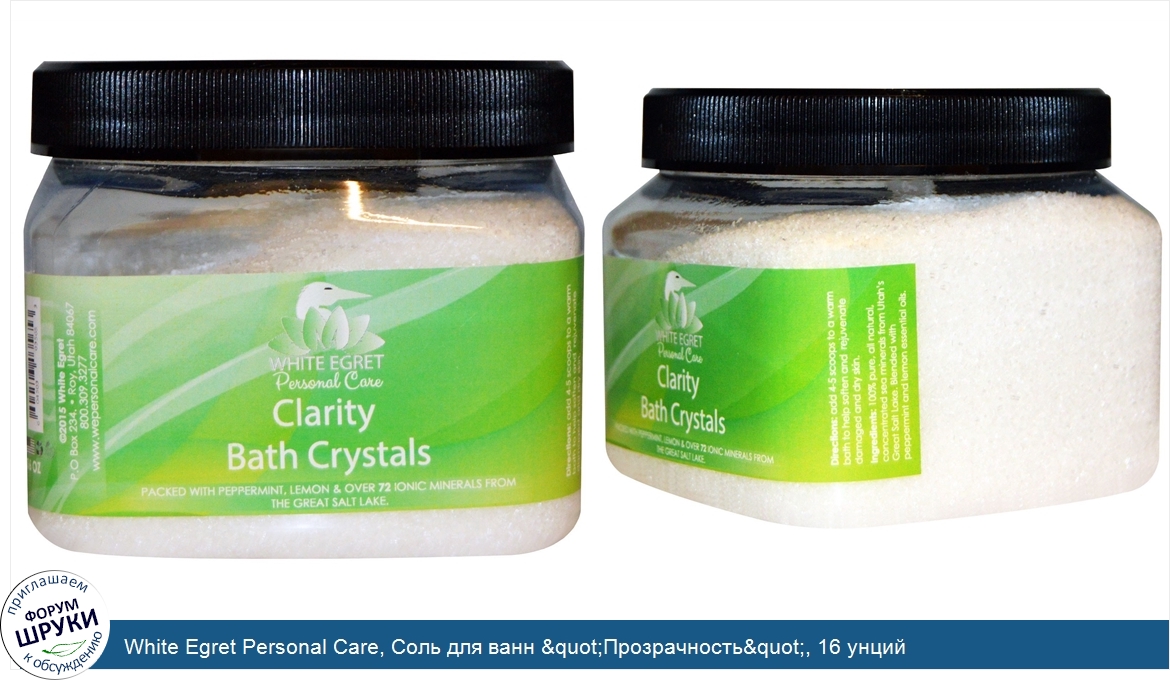 White Egret Personal Care, Соль для ванн "Прозрачность", 16 унций