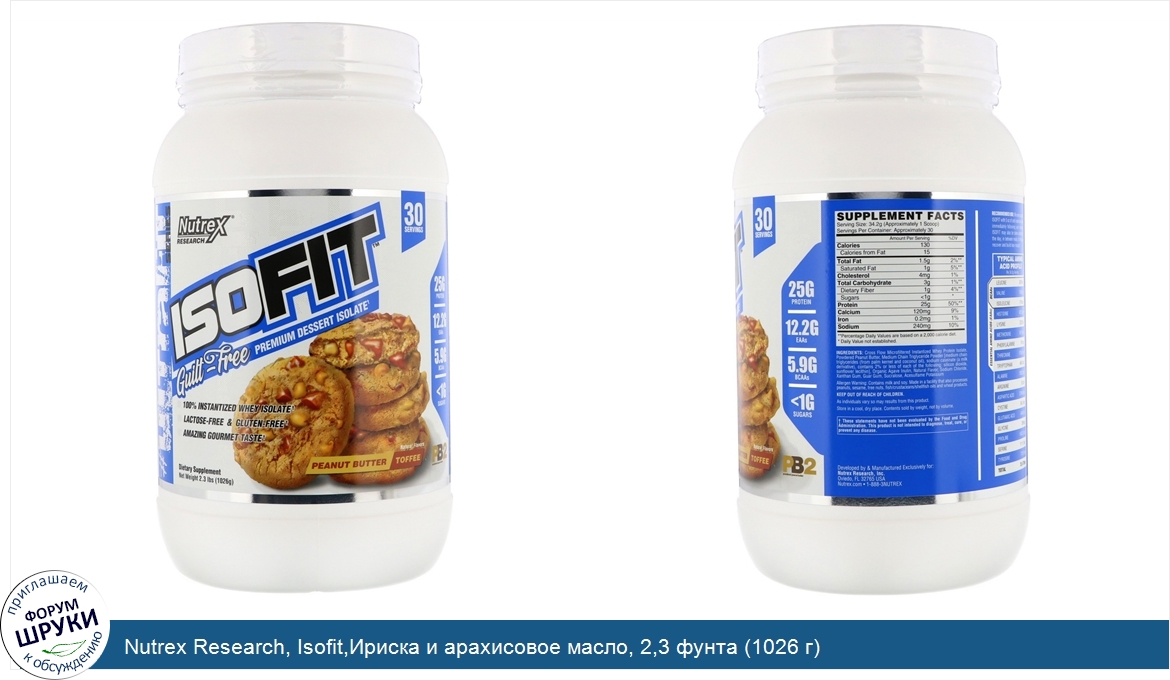Nutrex Research, Isofit,Ириска и арахисовое масло, 2,3 фунта (1026 г)