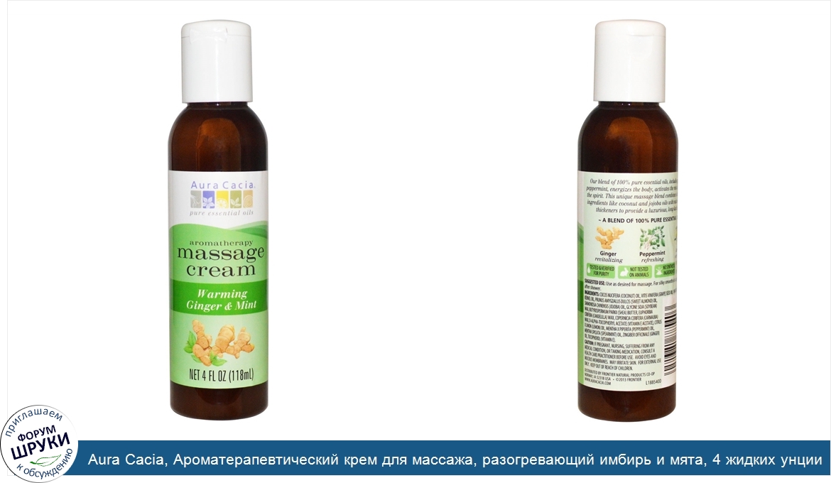 ru Aura Cacia, Ароматерапевтический крем для массажа, разогревающий имбирь и мята, 4 жидких унции (118 мл)