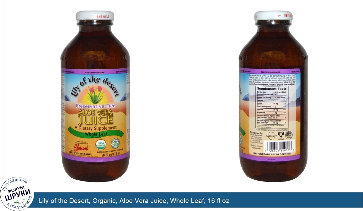 Друзья, если у вас есть отзыв/дополнение/комментарий/вопрос относительно Lily of the Desert, Organic, Aloe Vera Juice, Whole Leaf, 16 fl oz - напишите его ответом в эту тему (это будет полезно всему сообществу в целом и вам в отдельности).