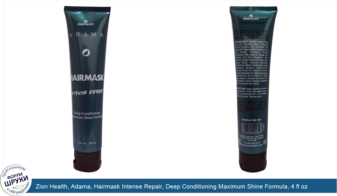 Zion Health, Adama, Hairmask Intense Repair, Deep Conditioning Maximum Shine Formula, 4 fl oz