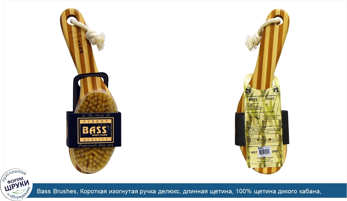 Bass Brushes, Короткая изогнутая ручка делюкс, длинная щетина, 100% щетина дикого кабана, Твердая, 1 щетка