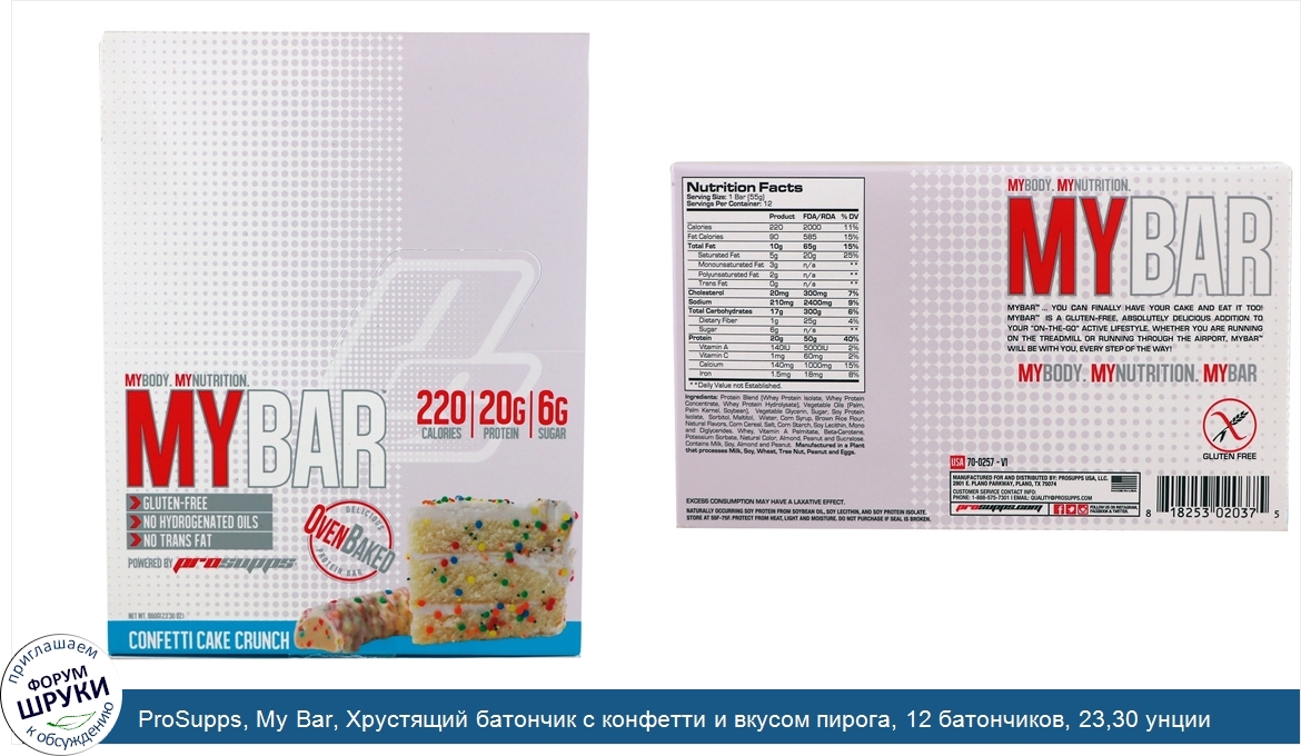 Друзья, если у вас есть отзыв/дополнение/комментарий/вопрос относительно ProSupps, My Bar, Хрустящий батончик с конфетти и вкусом пирога, 12 батончиков, 23,30 унции (660 г) - напишите его ответом в эту тему (это будет полезно всему сообществу в целом и вам в отдельности).