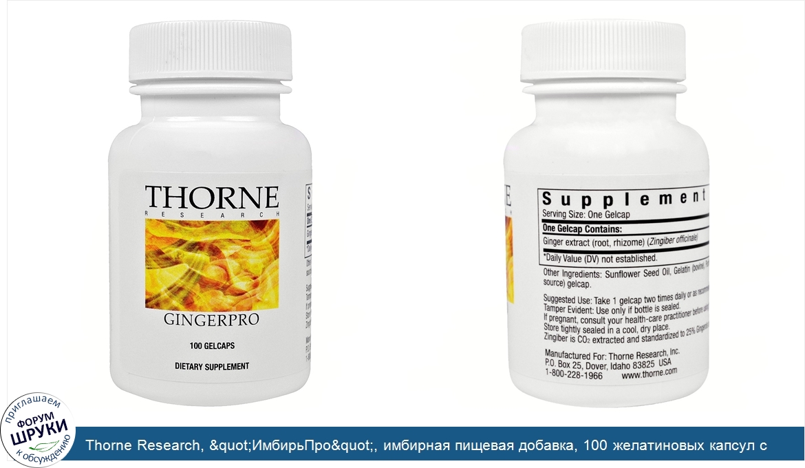 ru Thorne Research, "ИмбирьПро", имбирная пищевая добавка, 100 желатиновых капсул с жидкостью