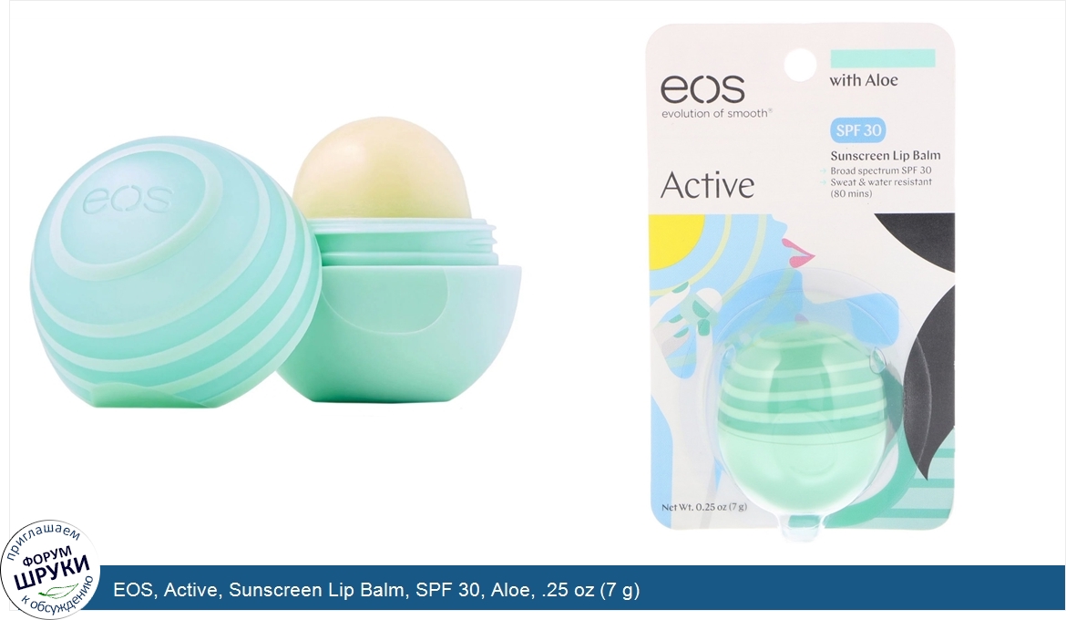 Друзья, если у вас есть отзыв/дополнение/комментарий/вопрос относительно EOS, Active, Sunscreen Lip Balm, SPF 30, Aloe, .25 oz (7 g) - напишите его ответом в эту тему (это будет полезно всему сообществу в целом и вам в отдельности).