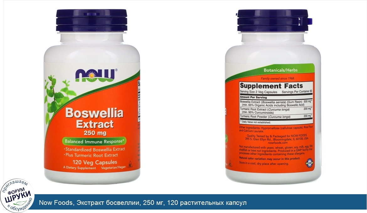 Сбалансированный иммунный ответ. Стандартизированный экстракт босвеллии. С экстрактом корня куркумы. Пищевая добавка. Вегетарианская/веганская формула. Кошерный продукт. Растения/травы. В семейном владении с 1968...
