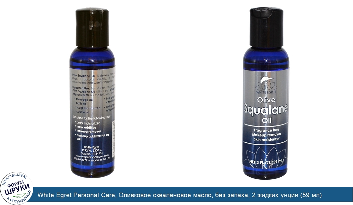 White Egret Personal Care, Оливковое сквалановое масло, без запаха, 2 жидких унции (59 мл)