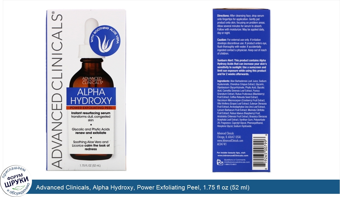 Друзья, если у вас есть отзыв/дополнение/комментарий/вопрос относительно Advanced Clinicals, Alpha Hydroxy, Power Exfoliating Peel, 1.75 fl oz (52 ml) - напишите его ответом в эту тему (это будет полезно всему сообществу в целом и вам в отдельности).