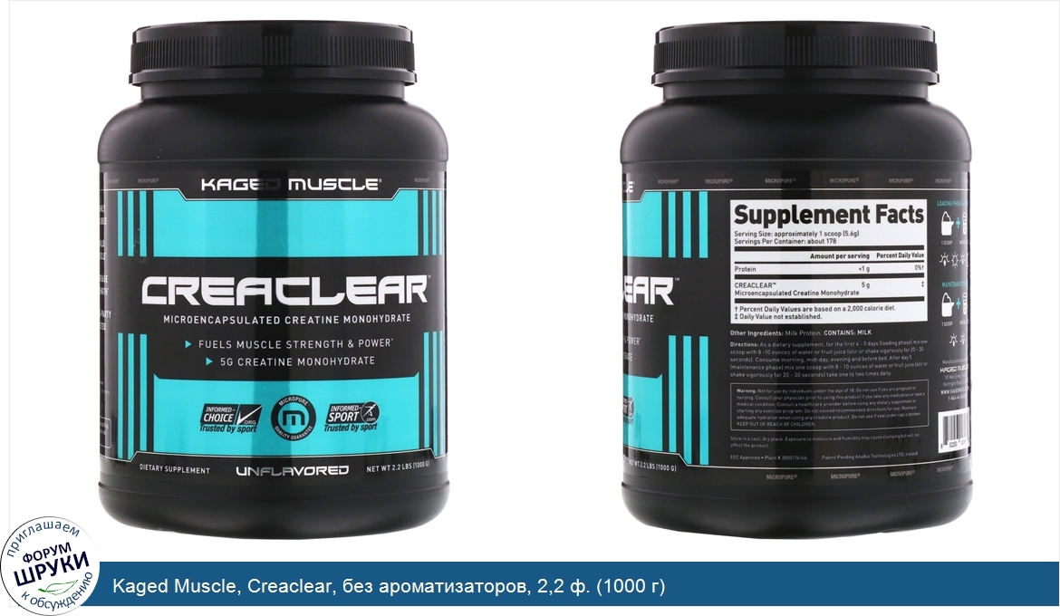Kaged Muscle, Creaclear, без ароматизаторов, 2,2 ф. (1000 г)